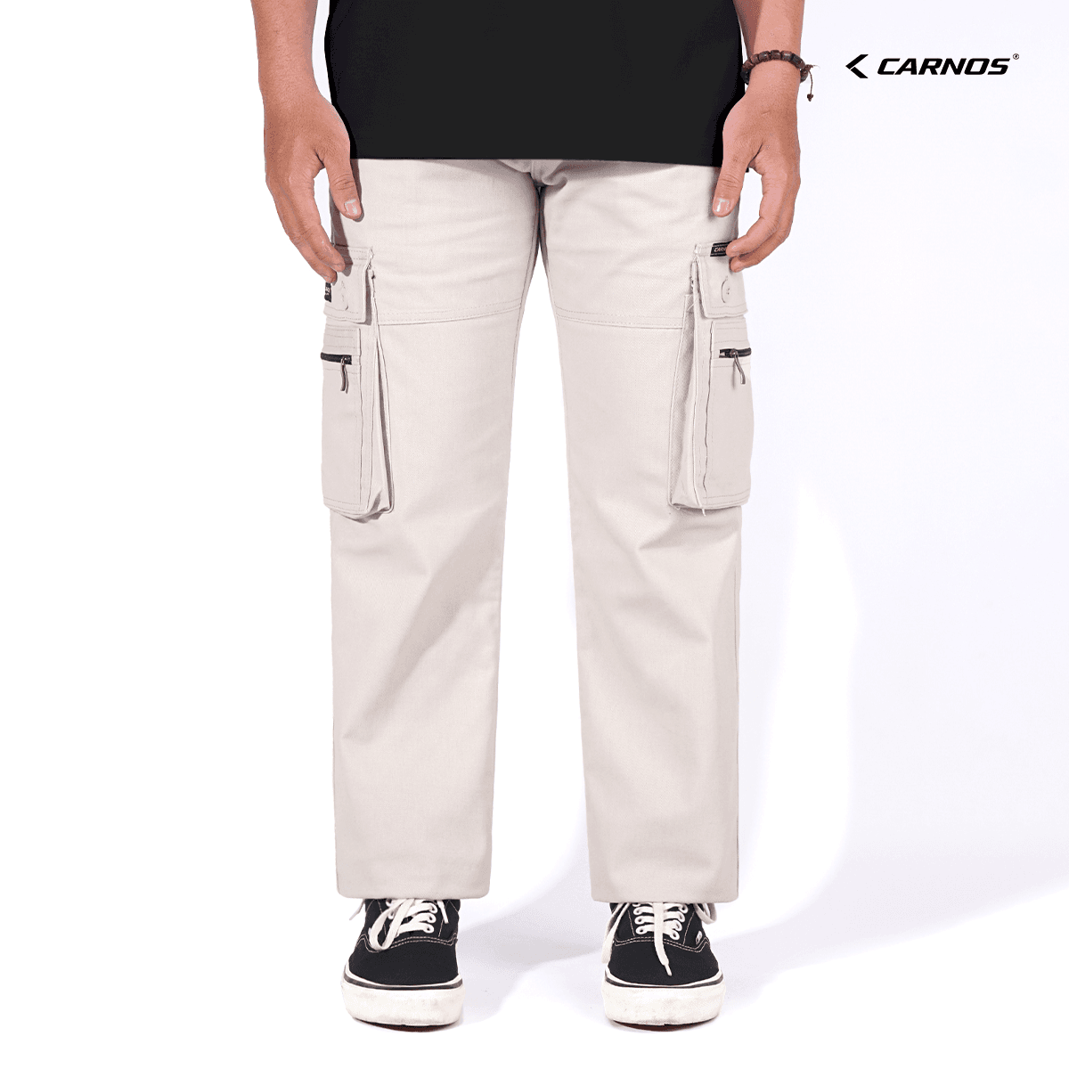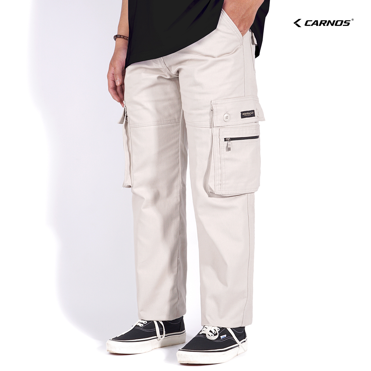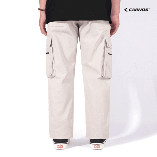 Carnos Zipper Celana Cargo Panjang Pria Reguler Cream