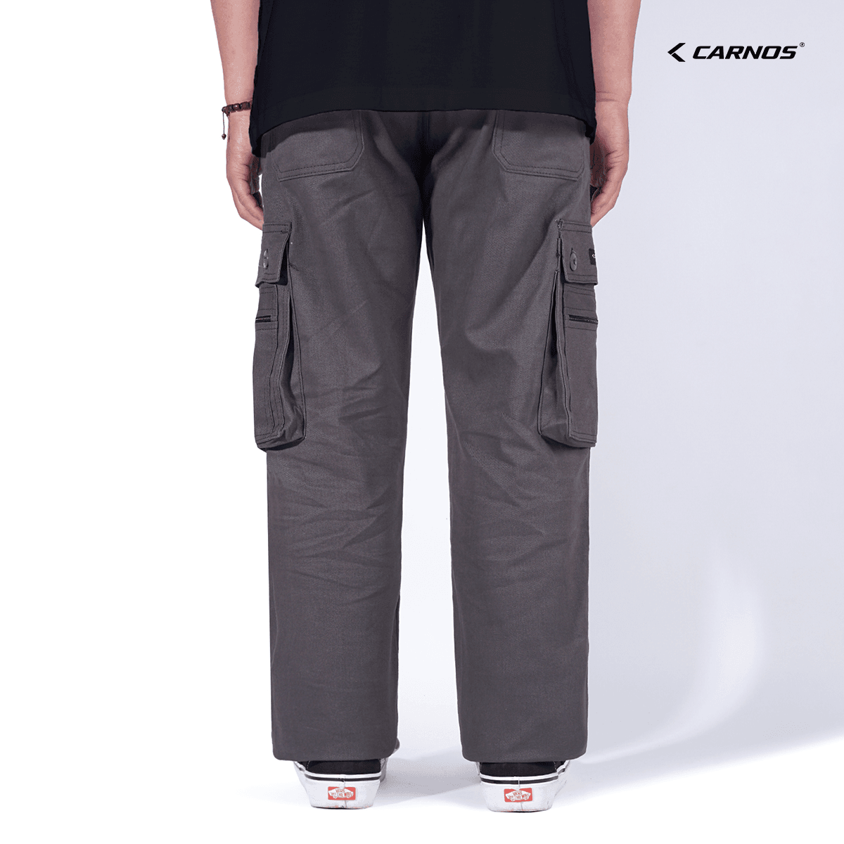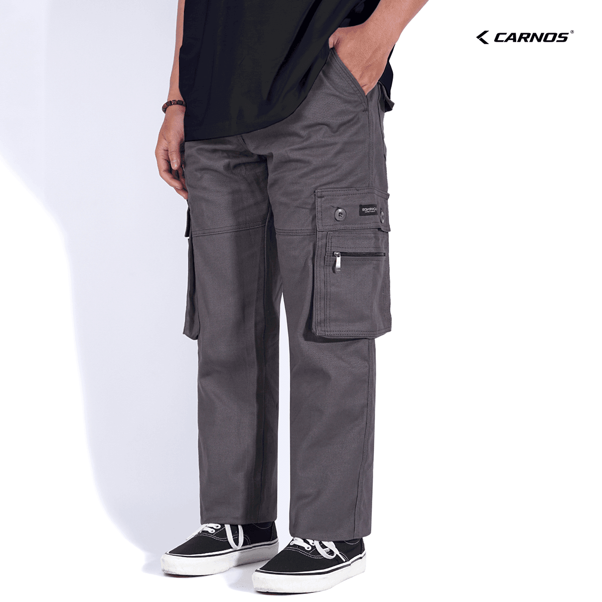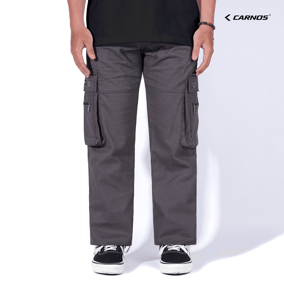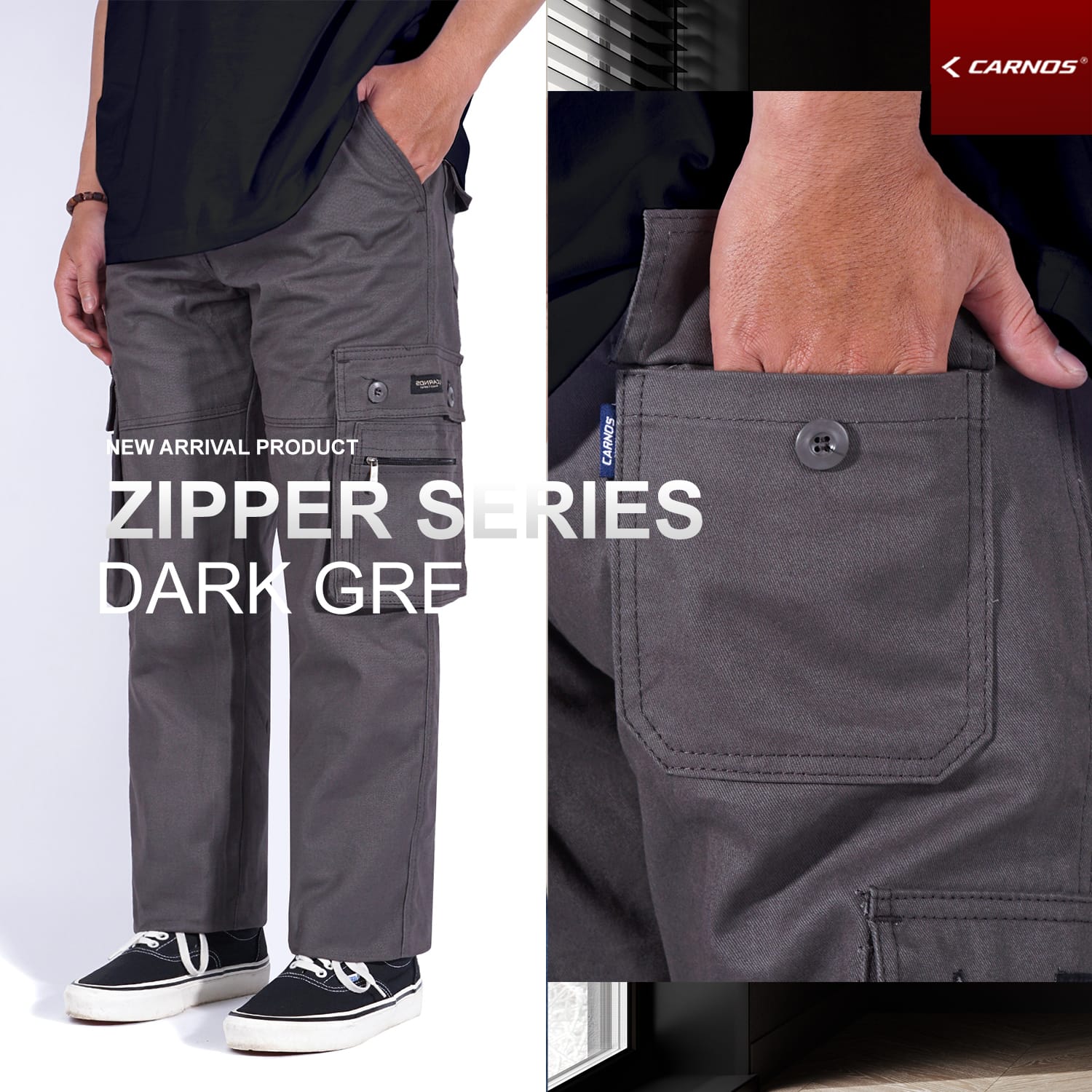 - Carnos Zipper Celana Cargo Panjang Pria Reguler Dark Grey